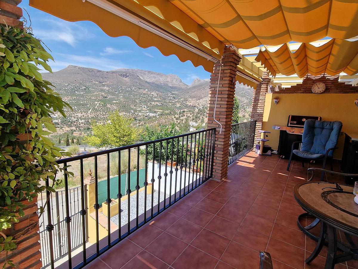 EXCLUSIVE - Casa Juanito is a large semi detached property, located on a corner plot just below the village of Alcaucin with all of its amenities and the natural park with its fantatsic walking routes. The house is fully walled and gated with off road parking and a garage. There is an 8 x 4 swimming pool with terrace around it for sun loungers. On the ground level you have the garage, 1 large bedroom and a utility room with toilet. On the next floor is the main living area, there is a terrace with bbq and views to the surrounding mountains, a guest shower and toilet, a lounge/diner with free standing wood burner, AC and alarm system. There is also a good size light kitchen with granite work tops, integrated appliances and a door to a small covered terrace, ideal for dining. The bedrooms are located on the next level via a staircase. There are 3 double bedrooms, all with air conditioning. The master bedroom has an ensuite bathroom and there is also a general bathroom on this level. This is a great opportunity to buy a property at a good price and within walking distance to a very charming and Spanish village.